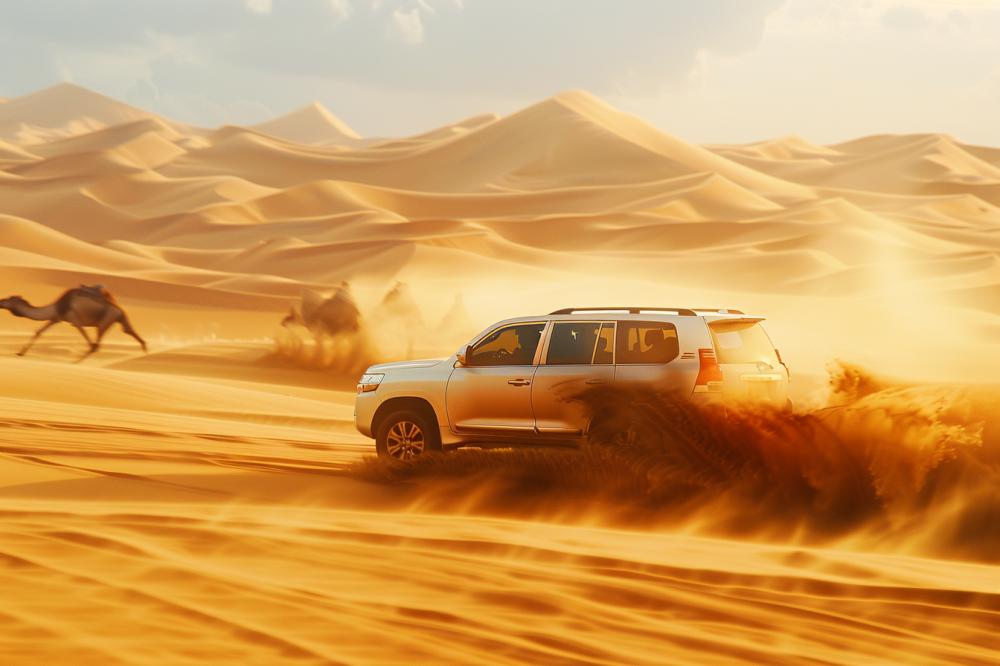 Embark on exhilarating adventures by car, bike, and camel.